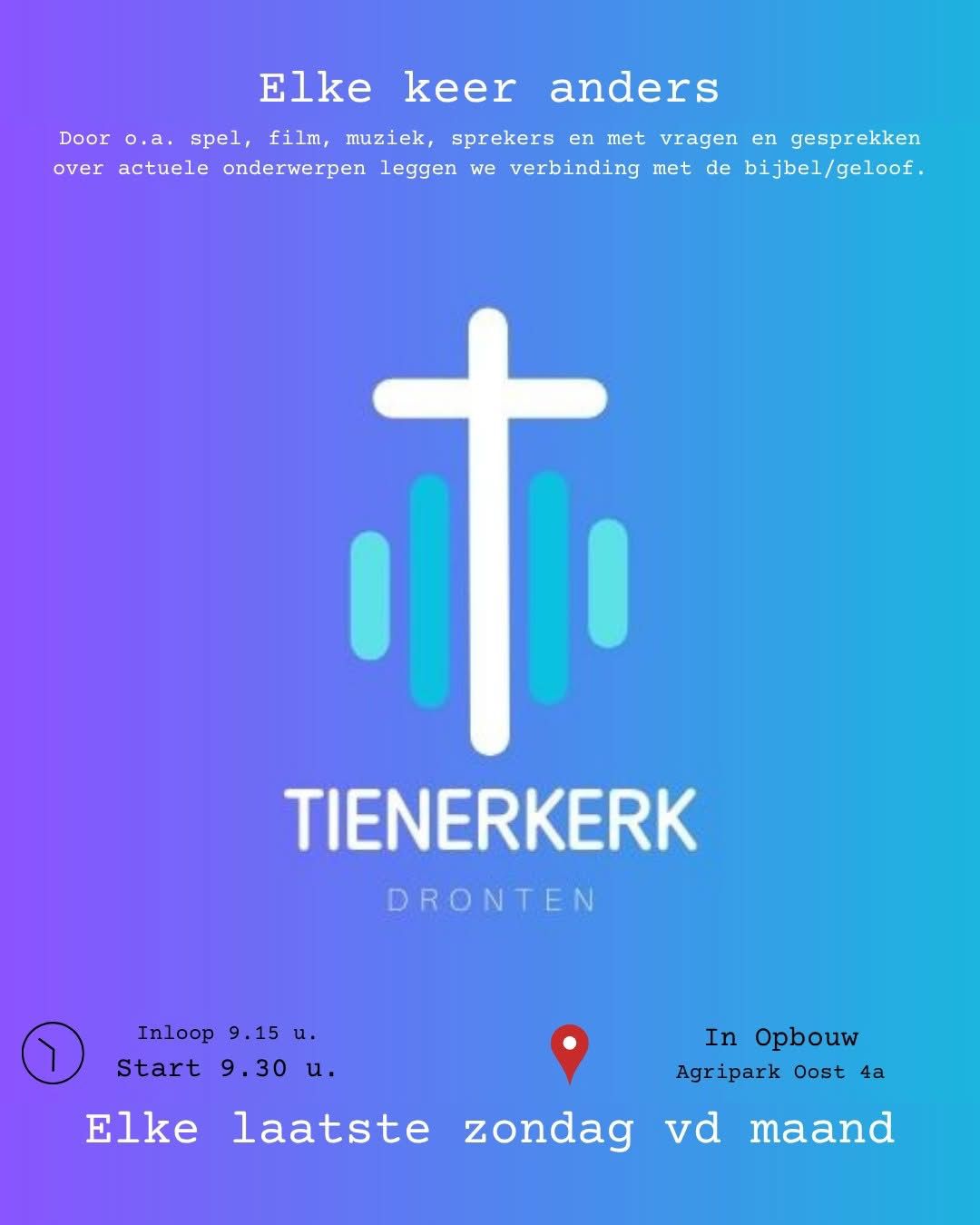 Tienerkerk is een plek waar jongeren elkaar ontmoeten, ontdekken wat hen bezighoudt en samen stilstaan bij geloof en dagelijks leven. In een ontspannen sfeer is er ruimte voor vragen, gesprekken, muziek en activiteiten die aansluiten jou als tiener. Iedere bijeenkomst biedt iets nieuws: een inspirerend thema, een boeiende spreker en natuurlijk gezelligheid met leeftijdsgenoten.